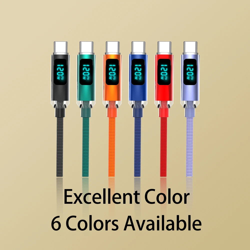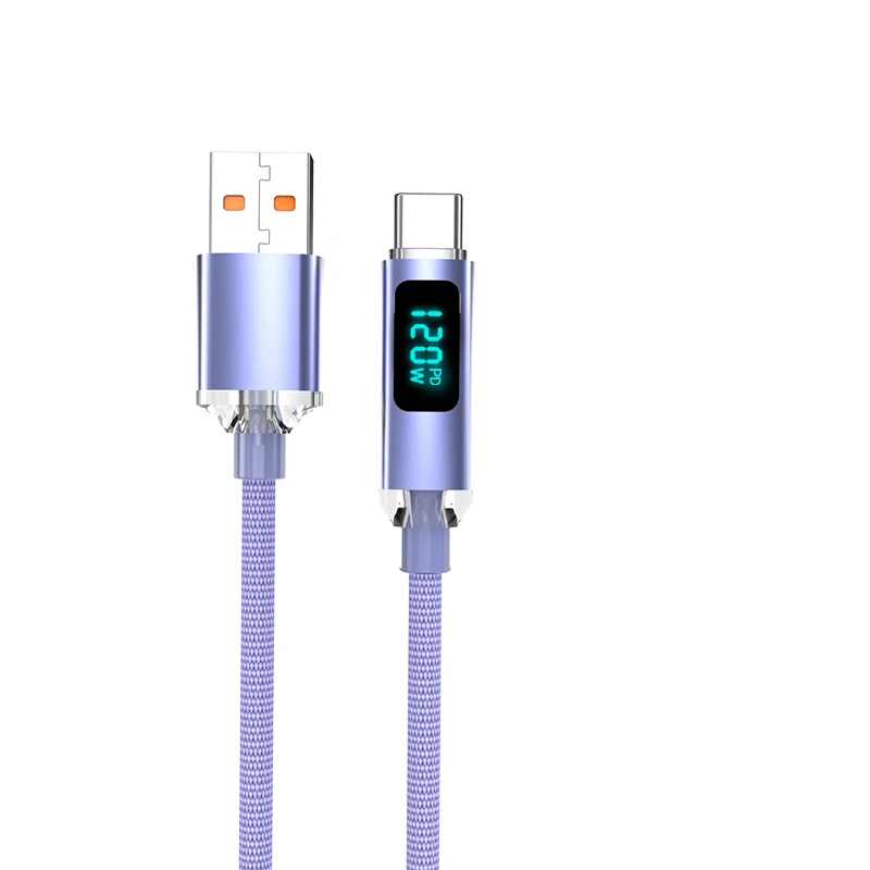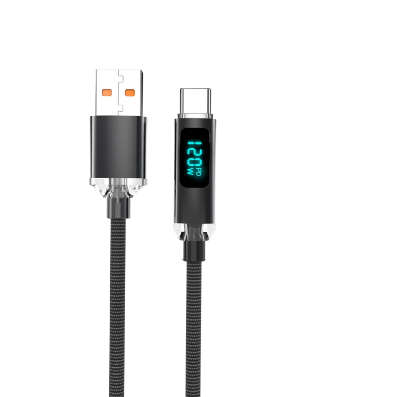 JINMUXI 120W USB A To Type C Super Fast Charging Cable Digital Display for Xiaomi Huawei Oppo OnePlus iPhone 15 16 Data Cable